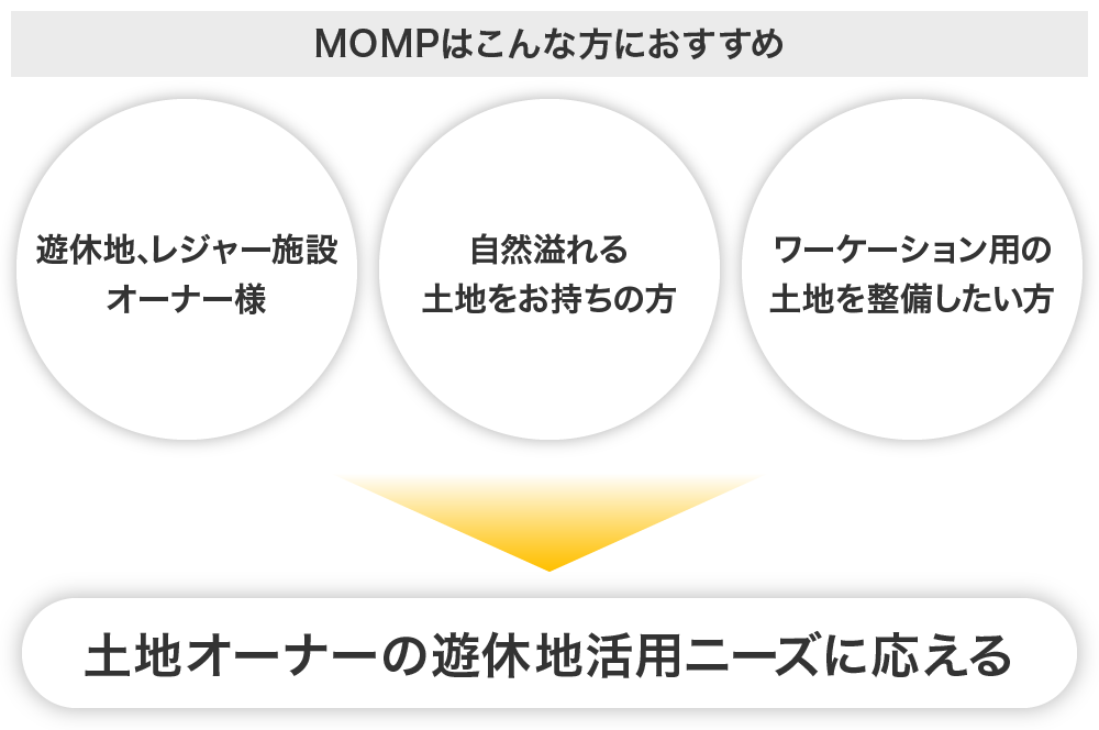弊社は、チームメンバーの経験や実績による企画実行力とブランド力を強みに、「MOMP」のビジネスモデルを遊休地活用を求める土地オーナー様などへ提案していきます。
