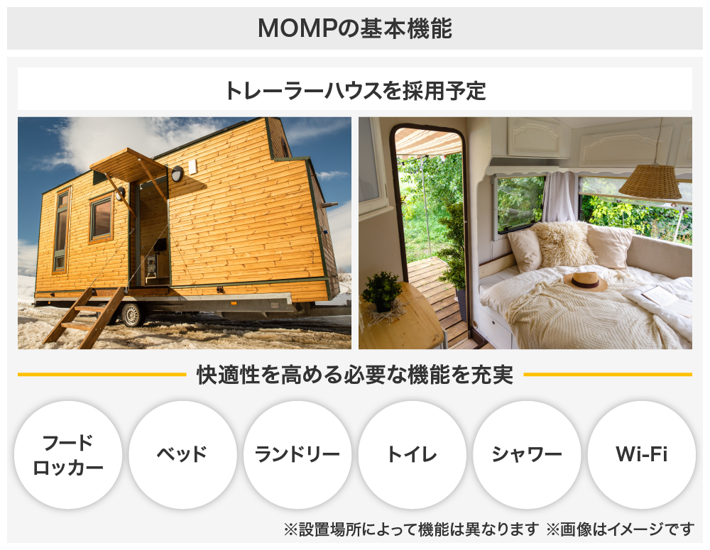 「快適な車中泊の空間」、気軽なお値段でアウトドア体験できる「MOMPホテル」の展開を開始します。「MOMP」プロジェクトの事例となるプロジェクトを展開する計画です。