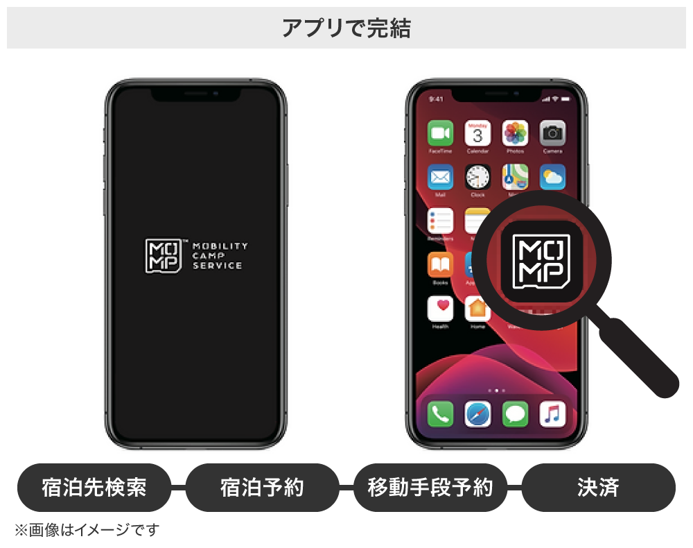 今後弊社は、自動運転やMaaSが普及する社会を見据え、既存のカーシェアや駐車場予約サービス・航空会社、電鉄会社などのサービスを活用し、移動手段から「MOMP」滞在先までを一括で予約・事前決済できる予約アプリを開発していく計画です。