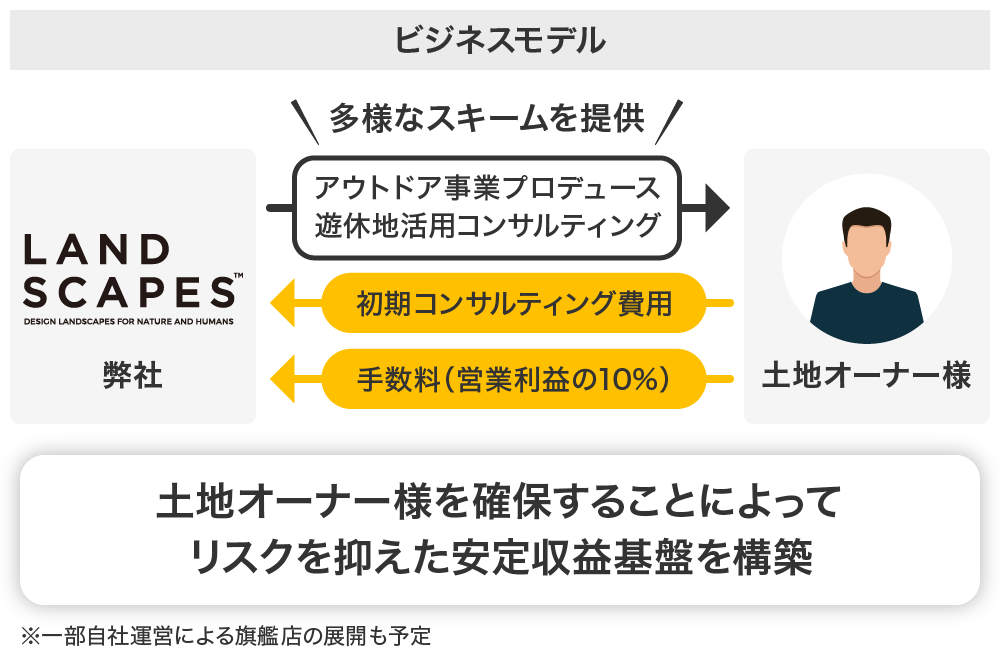 弊社代表の竹中はアウトドアの知見を活かし、企業や自治体と連携した施設プロデュースやイベントプロデュースを多数手がけています。さらに土地オーナー様とのネットワークを有する不動産業界経験を持ったクリエイティブディレクターや、メディアからも注目されるアウトドア業界に精通したメンターととも事業を推進していきます。