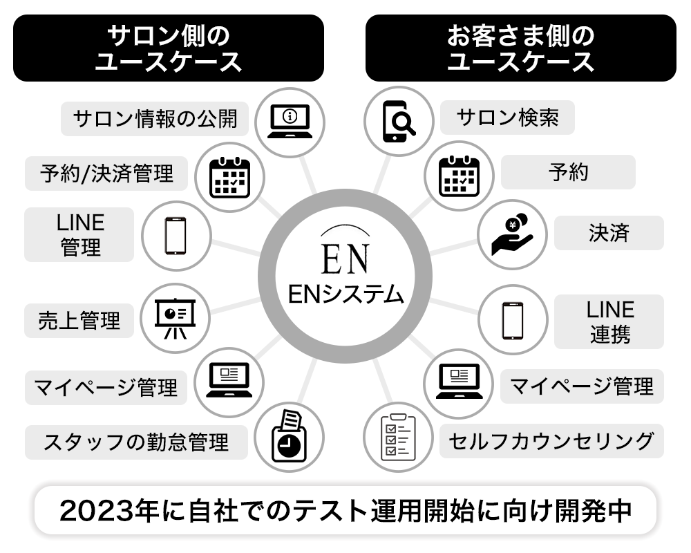 ãENã·ã¹ãã ãã¯ãåŒç€Ÿã§ã®ãã¹ãéå¶ã宿œããåŸã«ãä»ã®ã¡ã³ãºçŸå®¹ãµãã³ã«ããµãŒãã¹ã掻çšããŠããã ãèšç»ã§ãã
