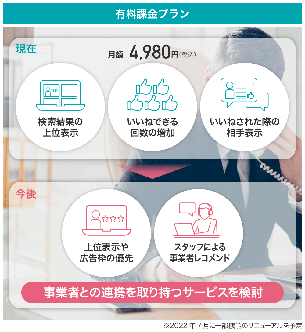 将来的には上位プランとして、優先度や広告枠が通常の有料プランよりも大きなものをラインナップとして拡充することや、ビジネスマッチングの個別面談での「はなまる手帳」のスタッフが間に入ってのレコメンドマッチングなどの事業者との連携を取り持つサービスも検討しています。