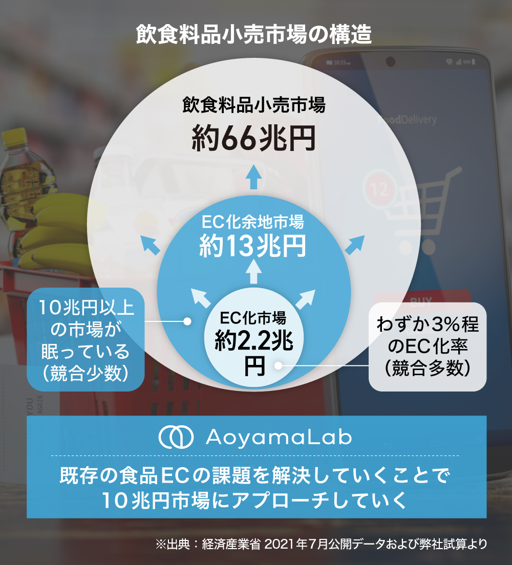 しかし、EC化率が低いということは、その課題を解決できれば一気に伸びる余地があるということでもあり、弊社の試算では食品ECの未開拓市場は10兆円に上ります。