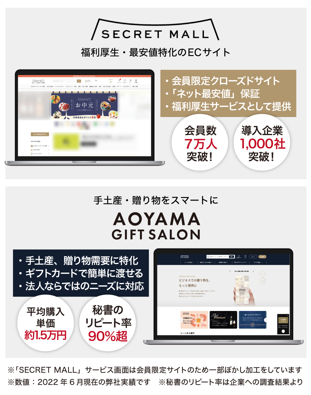 世界中でSDGsが叫ばれる中での事業対応としての「SECRET MALL」、ここ数年急拡大を遂げているデジタルギフト市場に対応するための「AOYAMA GIFT SALON」。