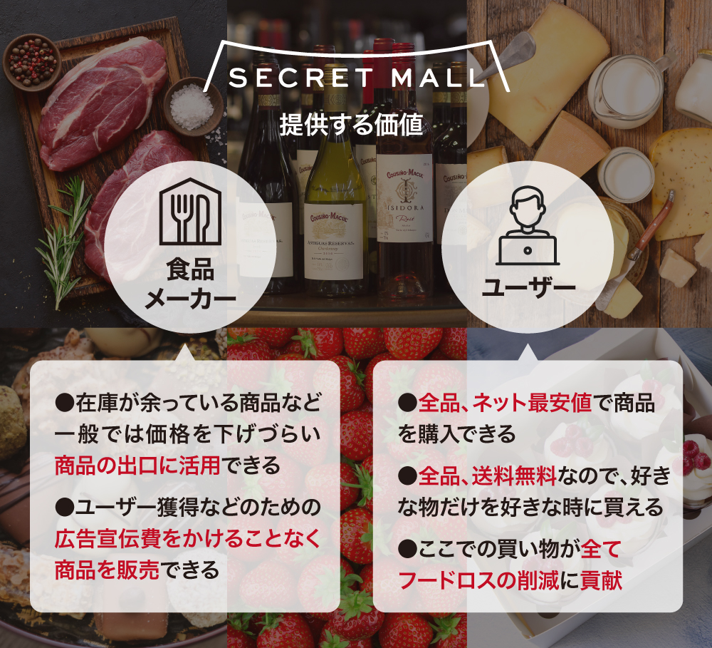 「SECRET MALL」は、全品ネット最安値を保証しながら商品を提供する完全会員限定の食品ECプラットフォームです。企業の福利厚生や特定会員向けサービスとして1,000社以上で導入されており、会員数は7万人を超えました(2022年6月現在)。
