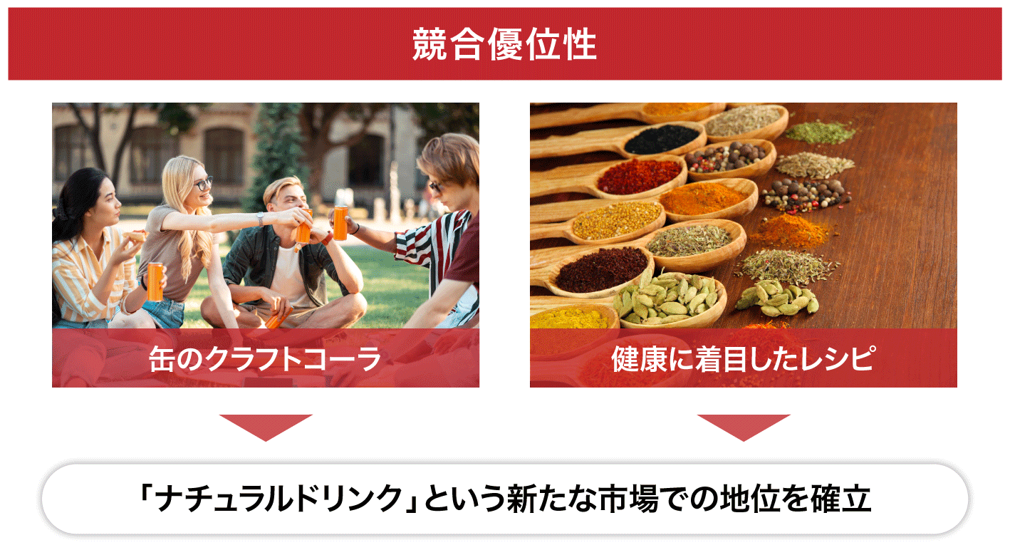 現在、クラフトコーラをRTD化している企業は少なく、競合優位性は高いと考えています。体にやさしく、安心な「ナチュラルドリンク」という意味においても、現在の清涼飲料水業界では希少な存在だと自負しています。