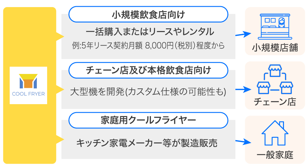 「クールフライヤー」の営業計画については、店舗が設備を導入しやすいよう、複数のプランを用意しています。