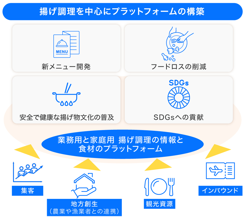 今後、世界中に製品を展開していくなかで、各地で新しいメニューが誕生すれば、揚げもの市場も活性化するとともに、新しい揚げもの文化が生まれる可能性も大いに考えられます。弊社ではそうした新しい食文化の創造や地方創生にも精力的に協力していきたいと考えています。