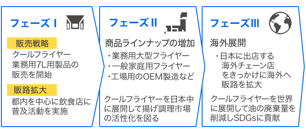 その後、2024年には海外展開を計画しています。並行してさらに、ラインナップの拡充も計画しています。弊社は、「クールフライヤー」で揚げものの課題を解決するとともに、研究開発型の企業として世界の食文化に貢献し、SDGsに則り持続的に発展する事業でありたいと考えています。