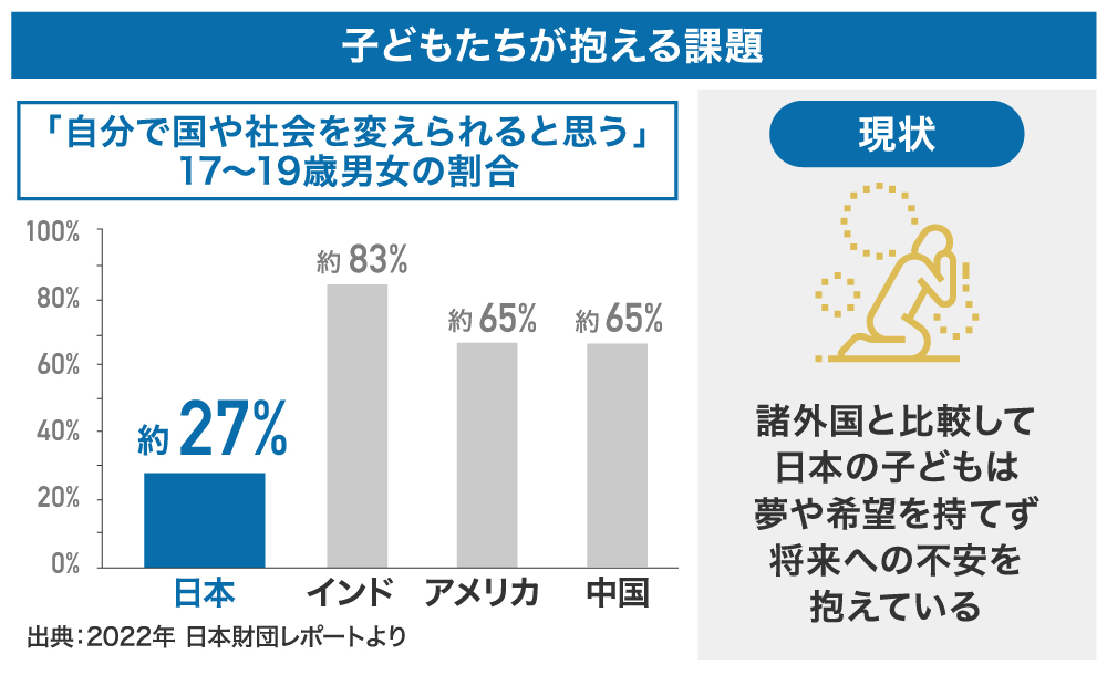 弊社はこの結果から、未来を担う子どもたちが、夢や希望を持てず、将来に不安を感じているこの現状を危惧しています。