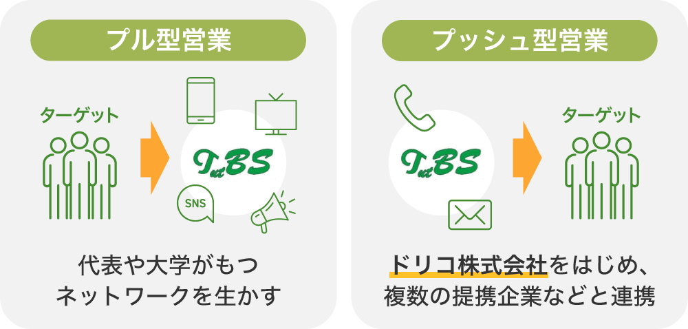 このように、今後バイオマス発電施設の需要がさらに高まるであろうことを踏まえた上で、弊社では弊社代表や大学がもつネットワークを活かしたプル型営業を展開すると同時に、資源開発・産業廃棄物処理の大手であるドリコ株式会社をはじめ、複数の提携企業などと連携しながらプッシュ型営業も積極的に進めていく考えです。そうすることで、中小企業を中心にバイオマス発電施設を日本に広めていきたいと考えています。