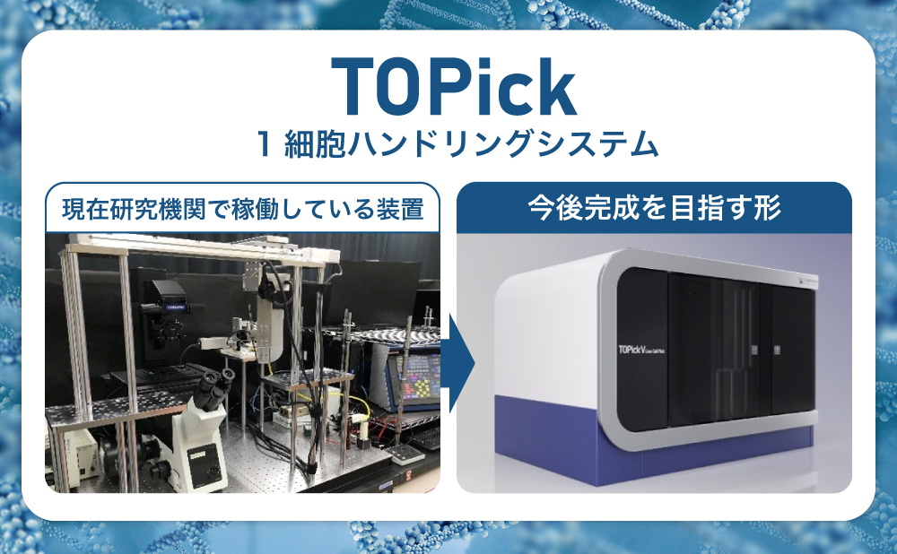 弊社は、1つの細胞を迅速かつ正確に操作するポンプ技術をもとに、1細胞ハンドリングシステム「TOPick(トピック)」を開発し、販売を行っています。