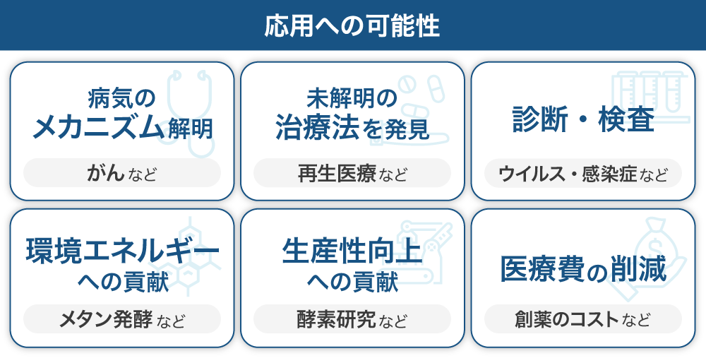 この技術は「次世代バイオ技術」としてさまざまな新産業を創造し、特に医療や診断分野の「基礎研究」で正しく本質的な理解を生み出すことにつなげられると信じ、この分野のリーディングカンパニーを目指します。
