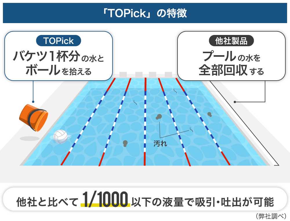 弊社の超微小液量ポンプ技術を用いて、顕微鏡観察下で一つ一つの細胞を高精度かつ迅速に分析容器へ直接移動させることが可能です。この時の液量は競合他社に比べて1/1000以下です(弊社調べ)。例えるならば、プールにバレーボールを投げ込み、弊社はバケツでそのバレーボールを直接拾うところを、他社はバレーボールと一緒にプールの水を全部回収するようなものです。