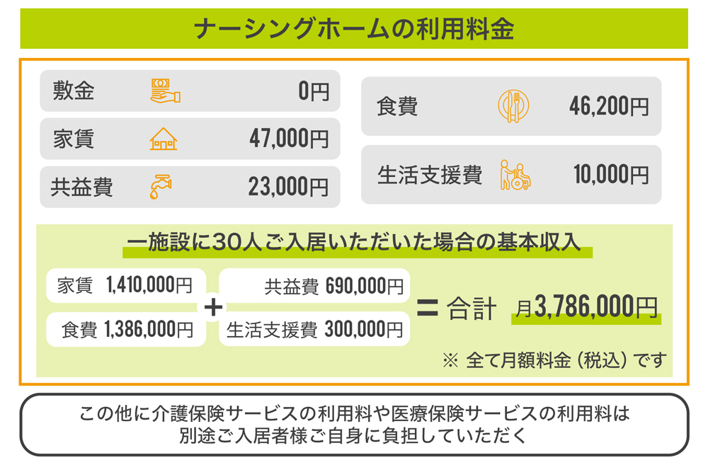 こうしたナーシングホームは、近年では全国にも増えてきましたが、弊社のように医療機関コードをちゃんと取得し、看護師が24時間体制で勤務している施設は少ないと考えています。