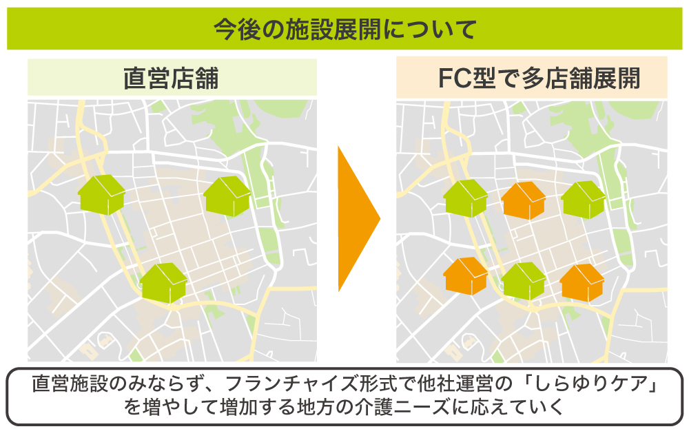 また、今後は直営モデルだけでなく、他事業者とパートナーシップ提携によるナーシングホームのフランチャイズ展開も想定しています。