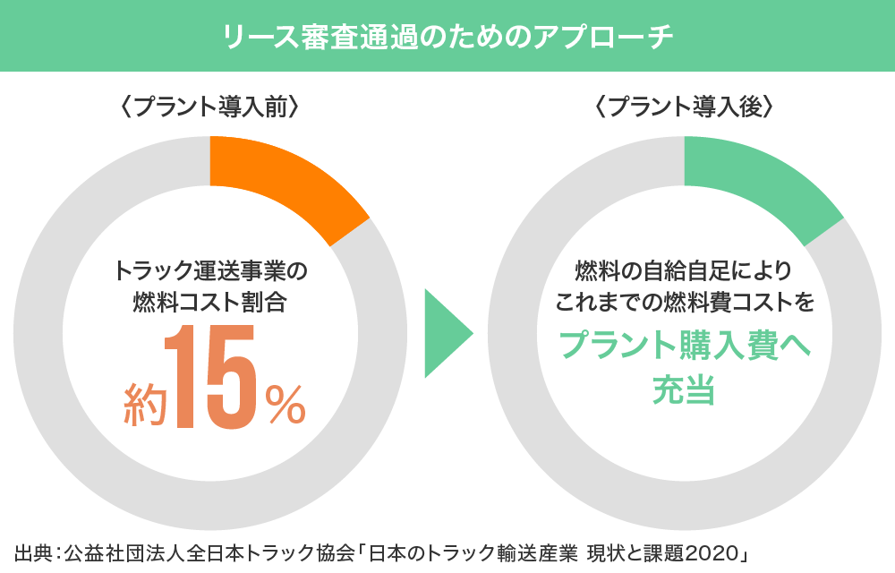 すでに全国に拠点を有する大手運送会社や引越事業者などにアプローチしており、いずれも好意的な反応でプラントの完成に期待を寄せていただいています。顧客にとっては、燃料コストの削減だけでなくクリーンエネルギーの活用による社会的評価の向上等のメリットが得られることもあり、1社の購入が決まることで運送会社間のネットワークを通じての認知拡大とともに受注が見込めると考えています。