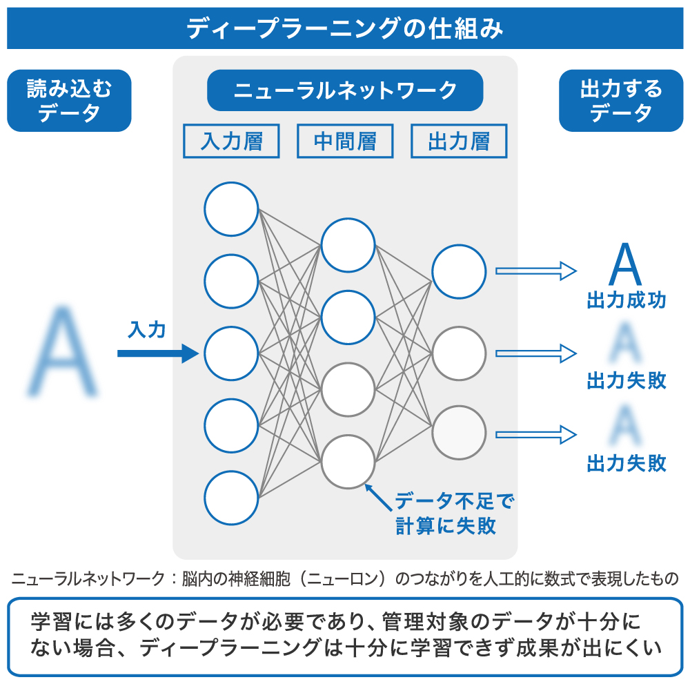 そうした場合、ディープラーニングは十分に学習できず成果が出ないか、データの変化に追随できないことも起こり得ます。