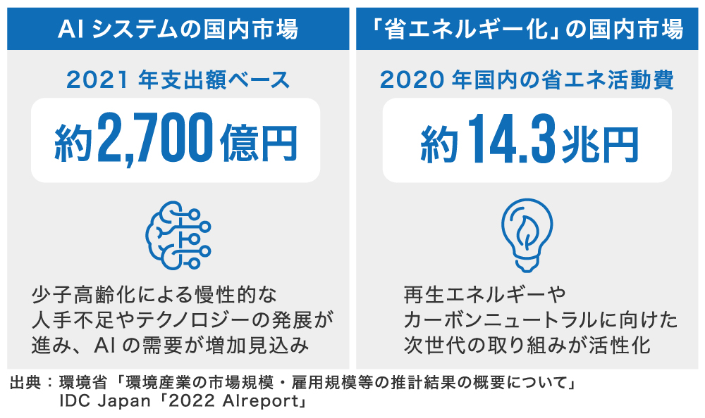 このような国全体の取り組みもあり、環境省は「省エネルギー化」の国内市場規模を、2020年時点で 約14.3 兆円と推定しています(出典:環境省「環境産業市場規模の推計結果の概要」)。