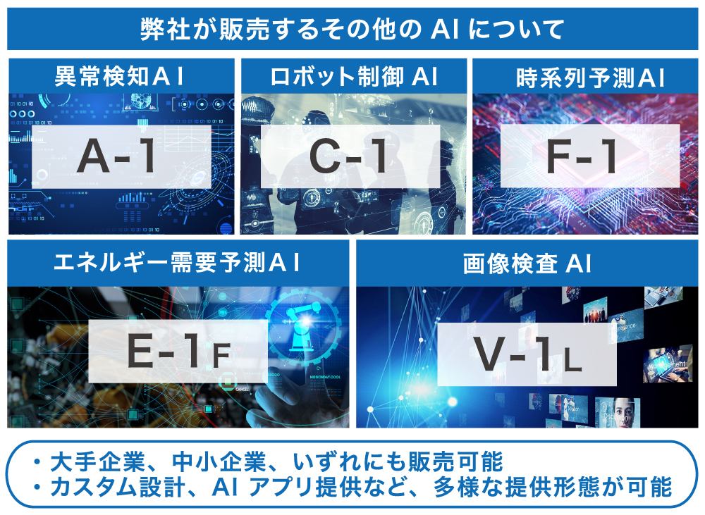 その他の、「画像検査AI」、「異常検知AI」は、現在主に工業製品の製造ラインの自動化・DX(デジタルトランスフォーメーション)向けに提供していますが、今後はディープラーニングが苦手とされる食品などの他分野にも幅広く提供していく予定です。