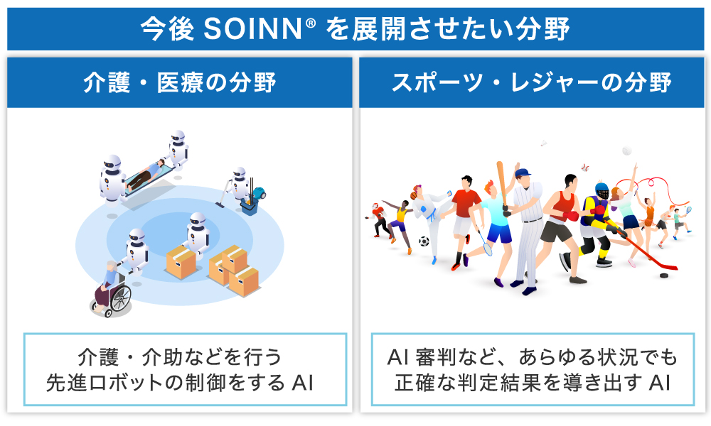 特に「SOINN®」の特許を取得済みの欧米やアジアの国々においては、知財が保護されていることから展開しやすいと考えています。