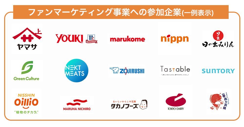 売上の要となるファンマーケティング事業に関しては、2022年の参加企業は40社以上を見込んでおり、中にはヤマサ醤油株式会社やユウキ食品株式会社、マルコメ株式会社、株式会社ニップンなど、大手食品・飲料メーカーにも参加していただいています。