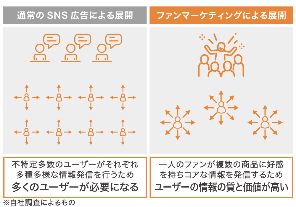 そして、その投稿を見たほかのユーザーも自然と商品やブランドに興味をもつようになり、ファンが新たなファンを生むという好循環が生まれます。