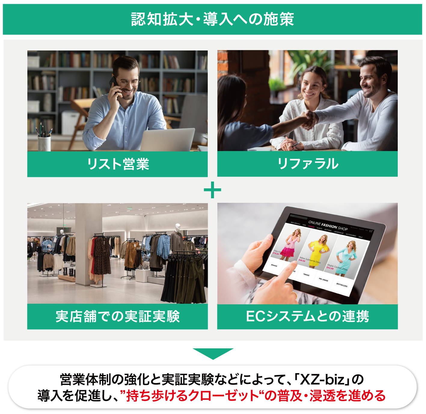 「XZ-biz」は、アパレルECのリスト営業とリファラルで獲得を増やす計画で、既にそのための体制を構築済みです。今後もさらに体制を強化していく予定です。