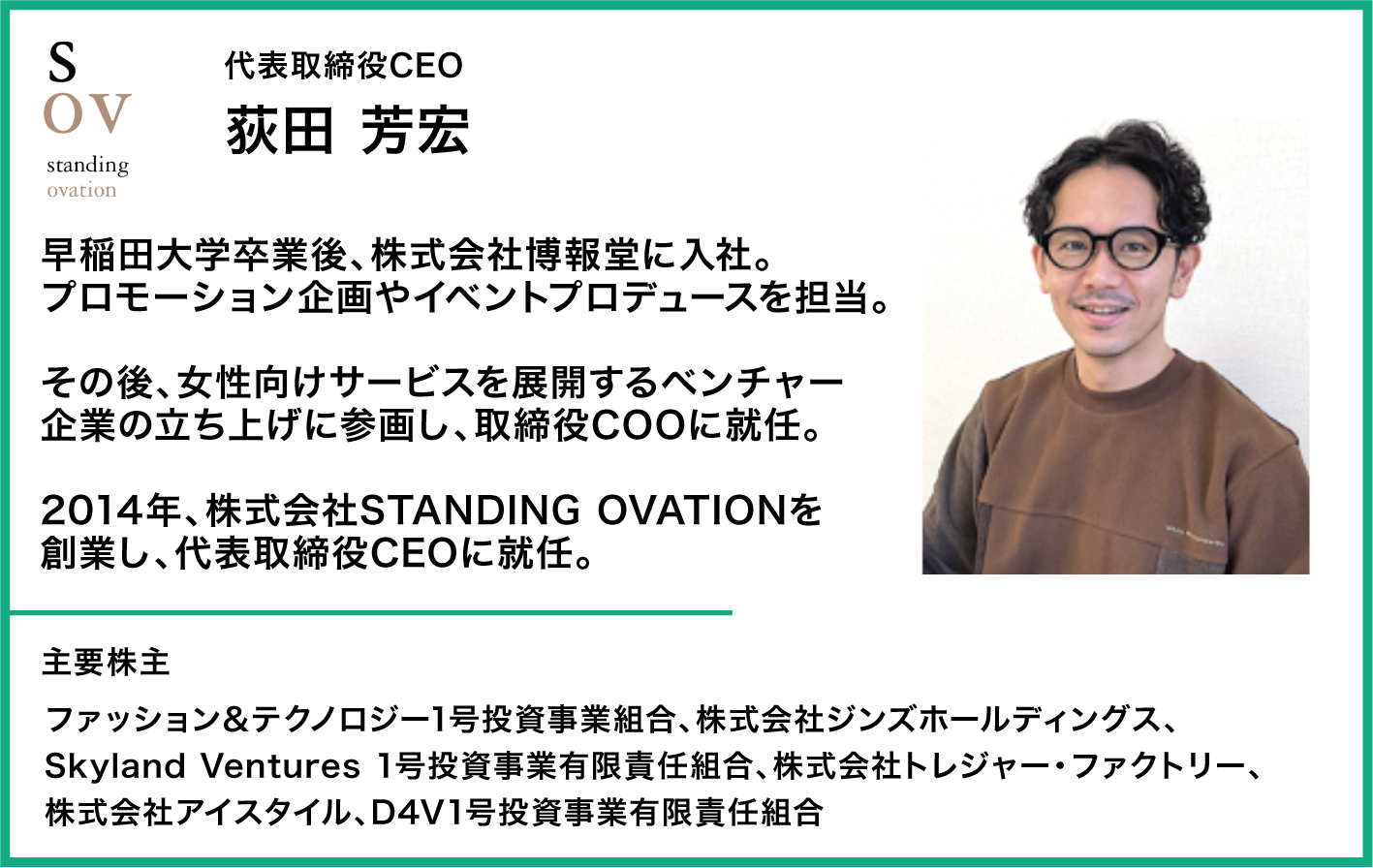 株式会社STANDING OVATIONの事業や展望は時代にマッチしたサービスであり、これからの成長に大きく期待をしております。