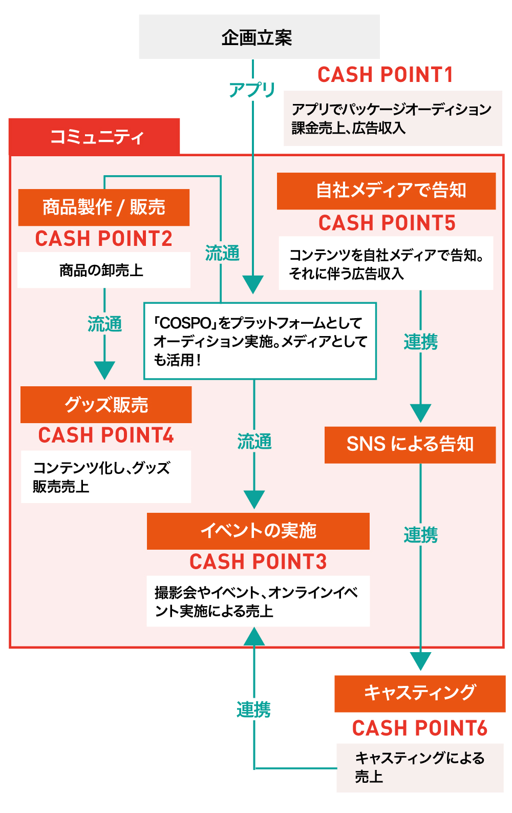 現在の売上のほぼ半分が、「COSPO」内での投げ銭(応援)による課金です。その他に自主イベントのチケット代やグッズ売上、他社イベントの制作費やキャスティング料などの収益があります。