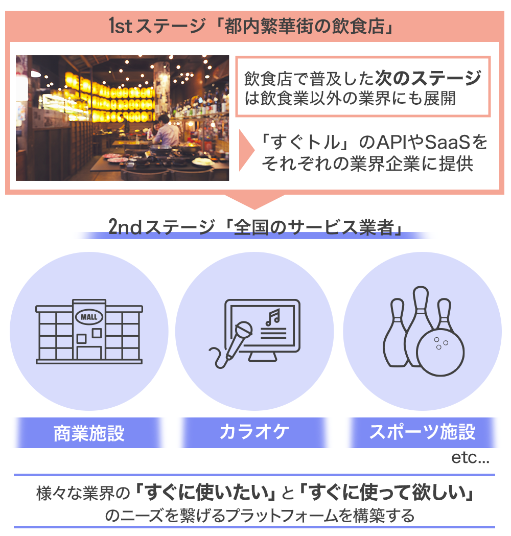 その経験を活かし、まずは需要が見込まれる東京都心部の繁華街エリアから「すぐトル」のシェアをドミナント戦略で確保していき、その先は全国展開を目指していきます。