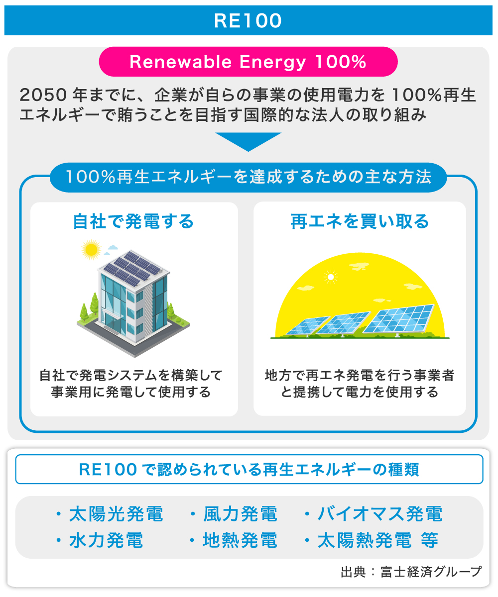 進行する地球温暖化の解決策として、世界では化石燃料に頼らない太陽光発電などをはじめとした再生可能エネルギーの普及が進んでいます。近年は、事業運営に必要なエネルギーを100%再生可能エネルギーで賄うことを目標とする「RE100」を掲げる企業が大変な勢いで増えています。