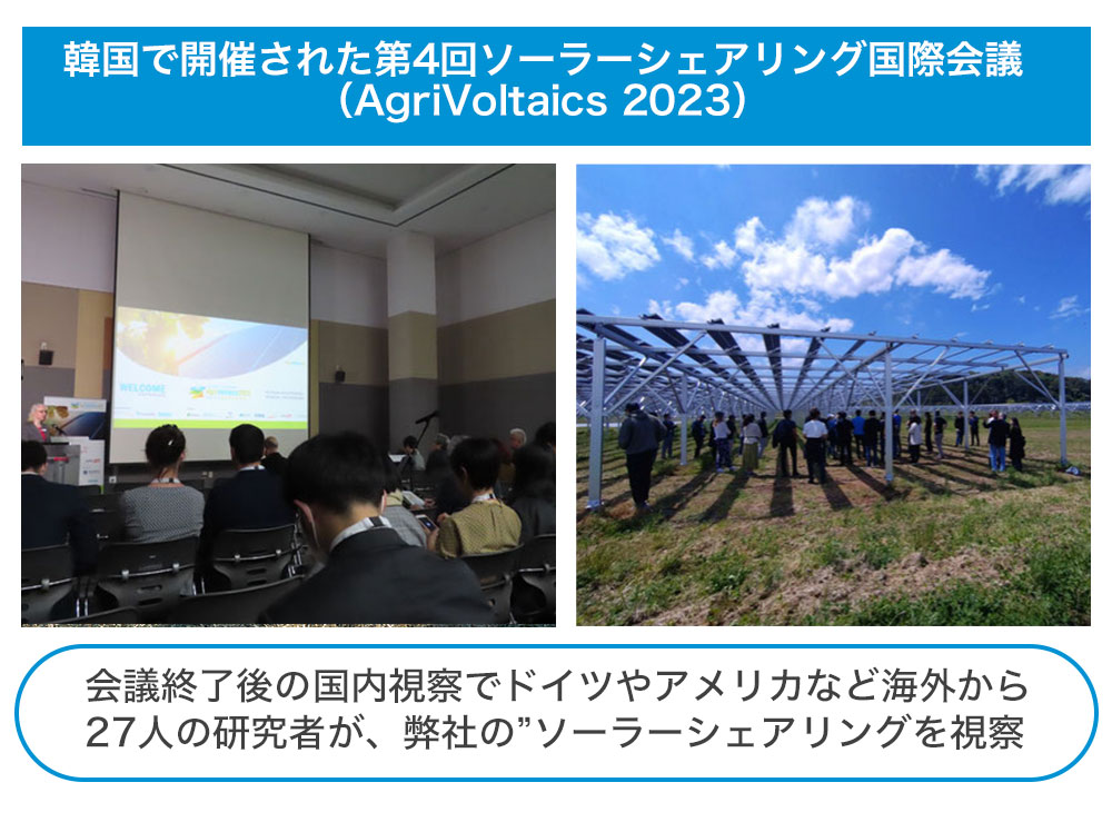 先日韓国で開催されたソーラーシェアリングの国際会議では、弊社が提案する同技術が各国の研究者から注目を集めました。
