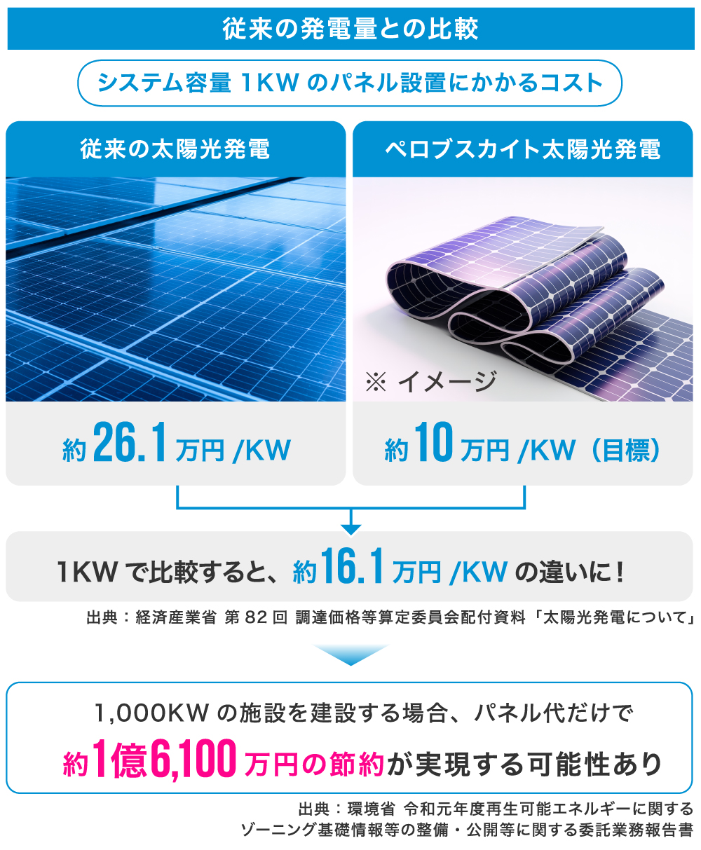 ペロブスカイト太陽電池のコストダウンを見込んでいます。そのため、既存の発電所にもシステムを入れ替えるニーズに対応できると想定しています。