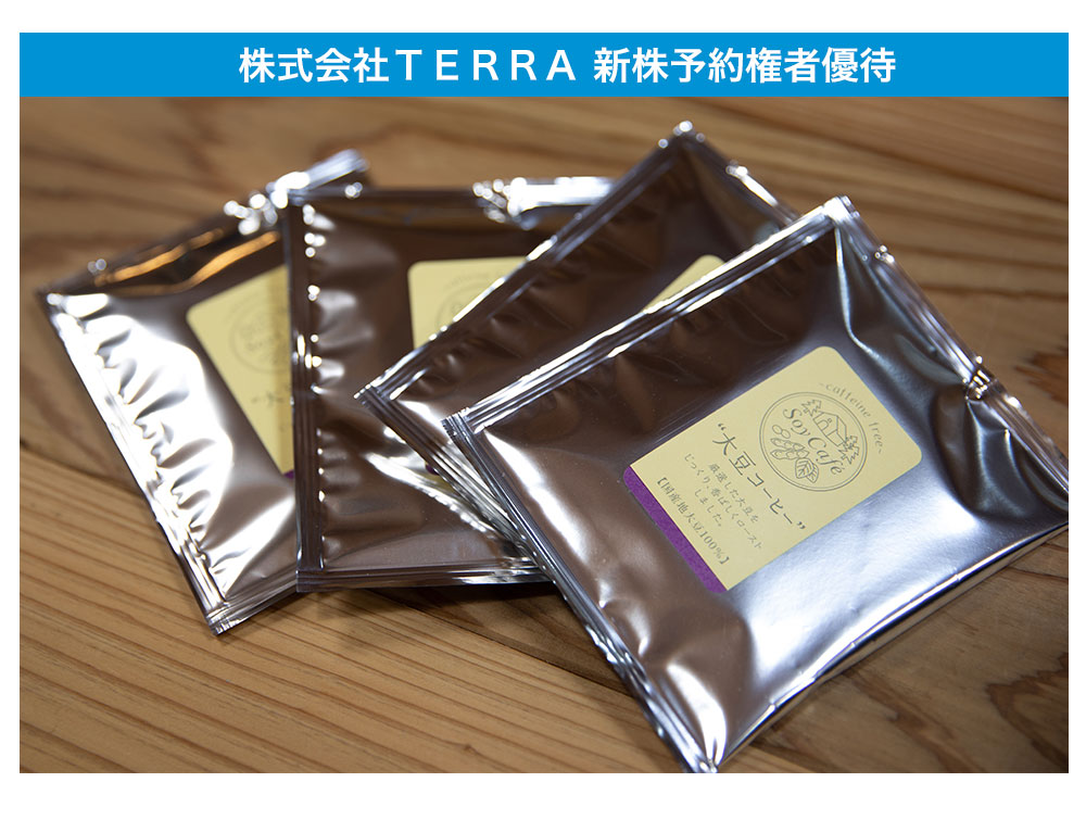 2023年度の優待内容は、弊社で販売しているオリジナルの大豆コーヒー10パックを予定しております。