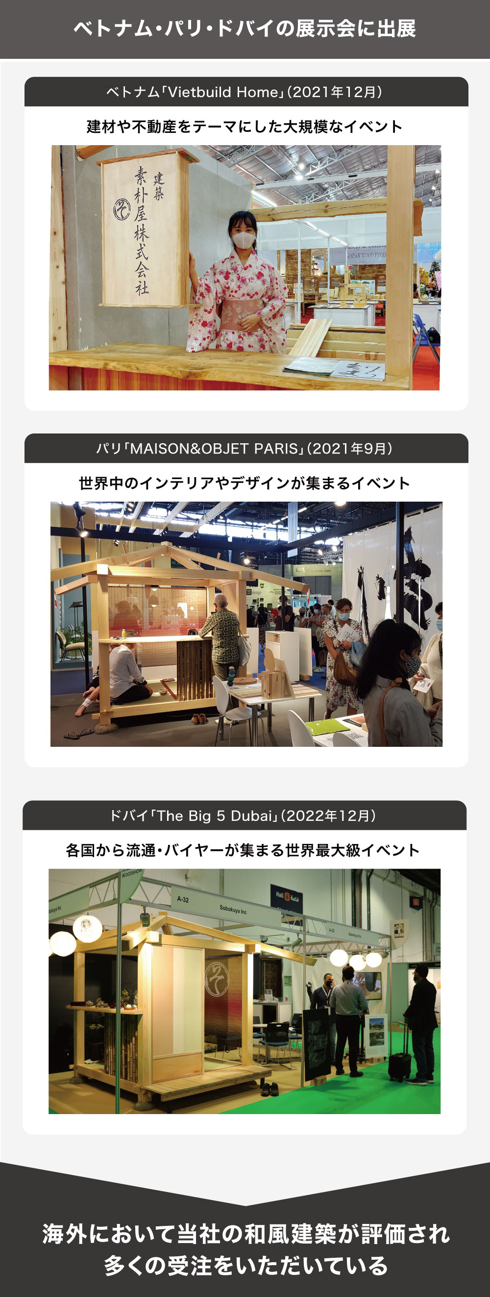 こうした点は海外展開の際の強みになるとも考えており、当社の和風建築を世界のニーズに合わせた形で発信していけると自負しています。