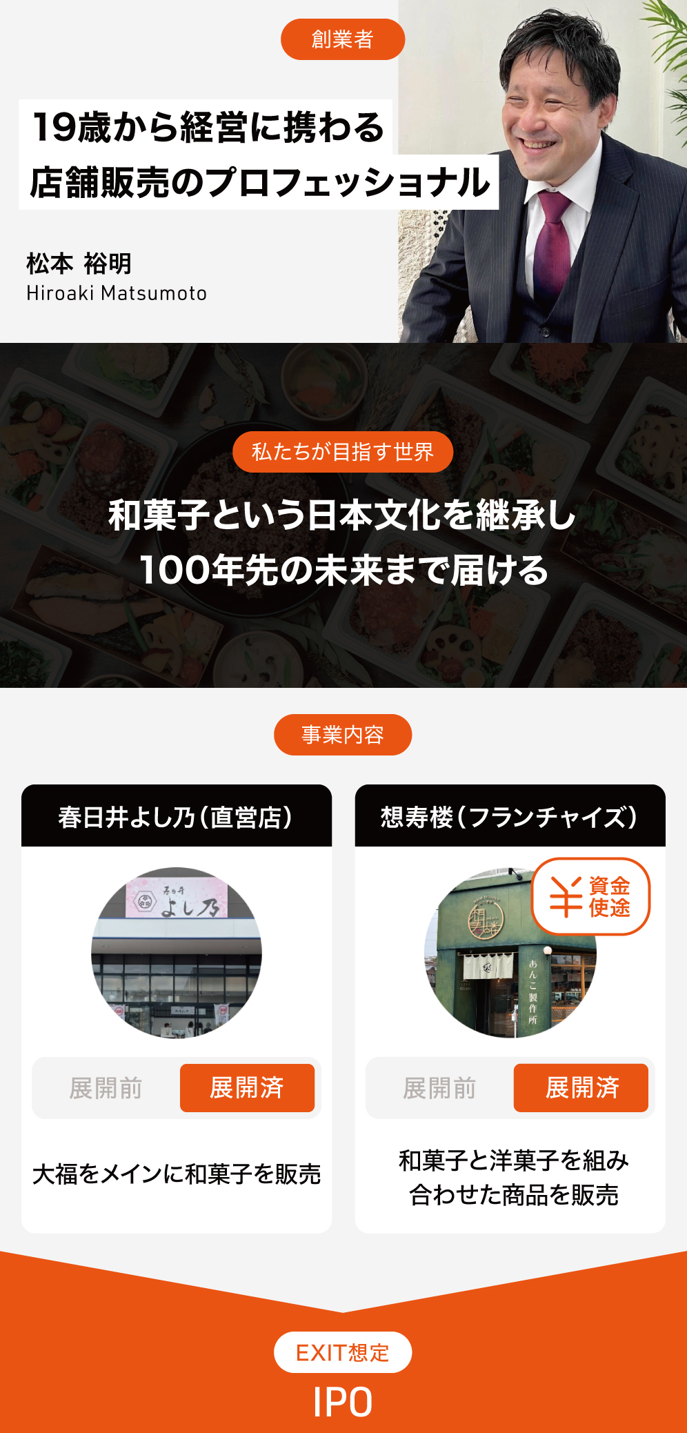 今後、日本各地で失われつつある多くの和菓子の技術を再興させ、そのノウハウを活かして世界中に和菓子を届ける事業に乗り出そうとしています。
