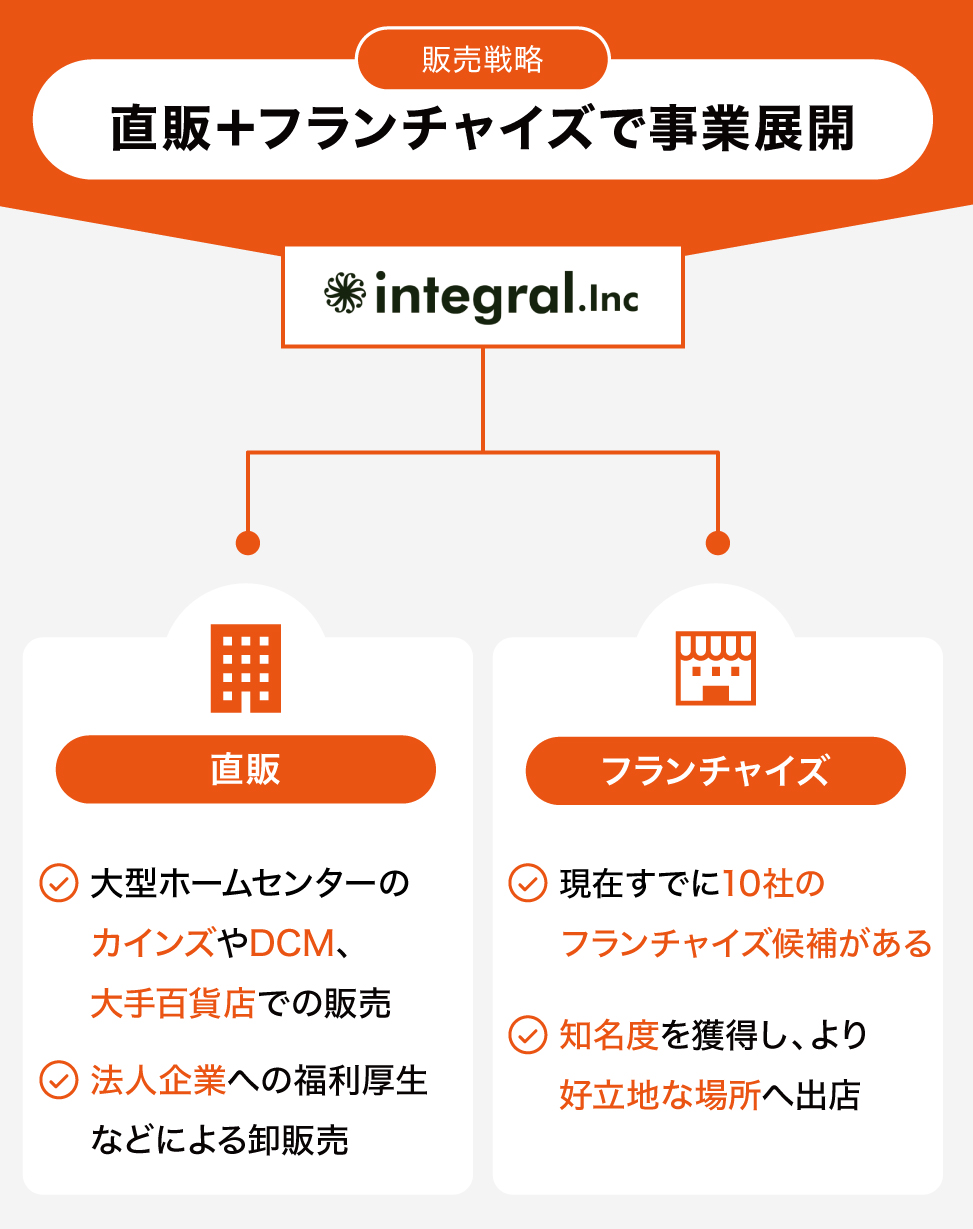 今後は、FC1店舗につき3箇所で催事を行う「1店舗3催事戦略」によって、大手百貨店をはじめカインズやDCMなどのホームセンターなどでの催事を行いつつ、法人企業への卸販売も積極的に行なっていきます。