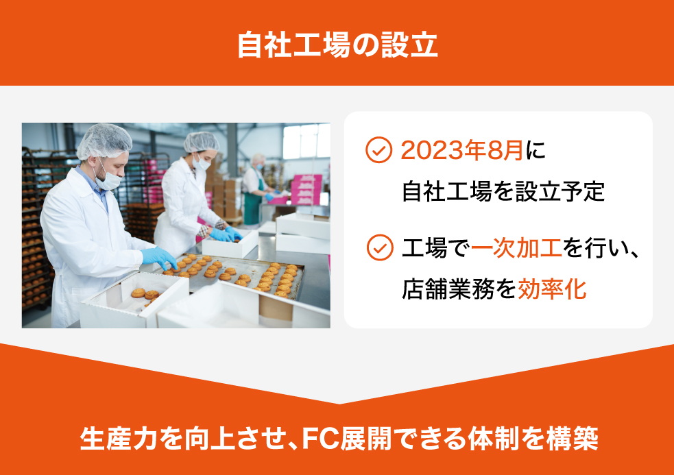 また、同時に新たな製造人員とFCスーパーバイザーの採用を進め、FC本部としての体制構築を目指します。