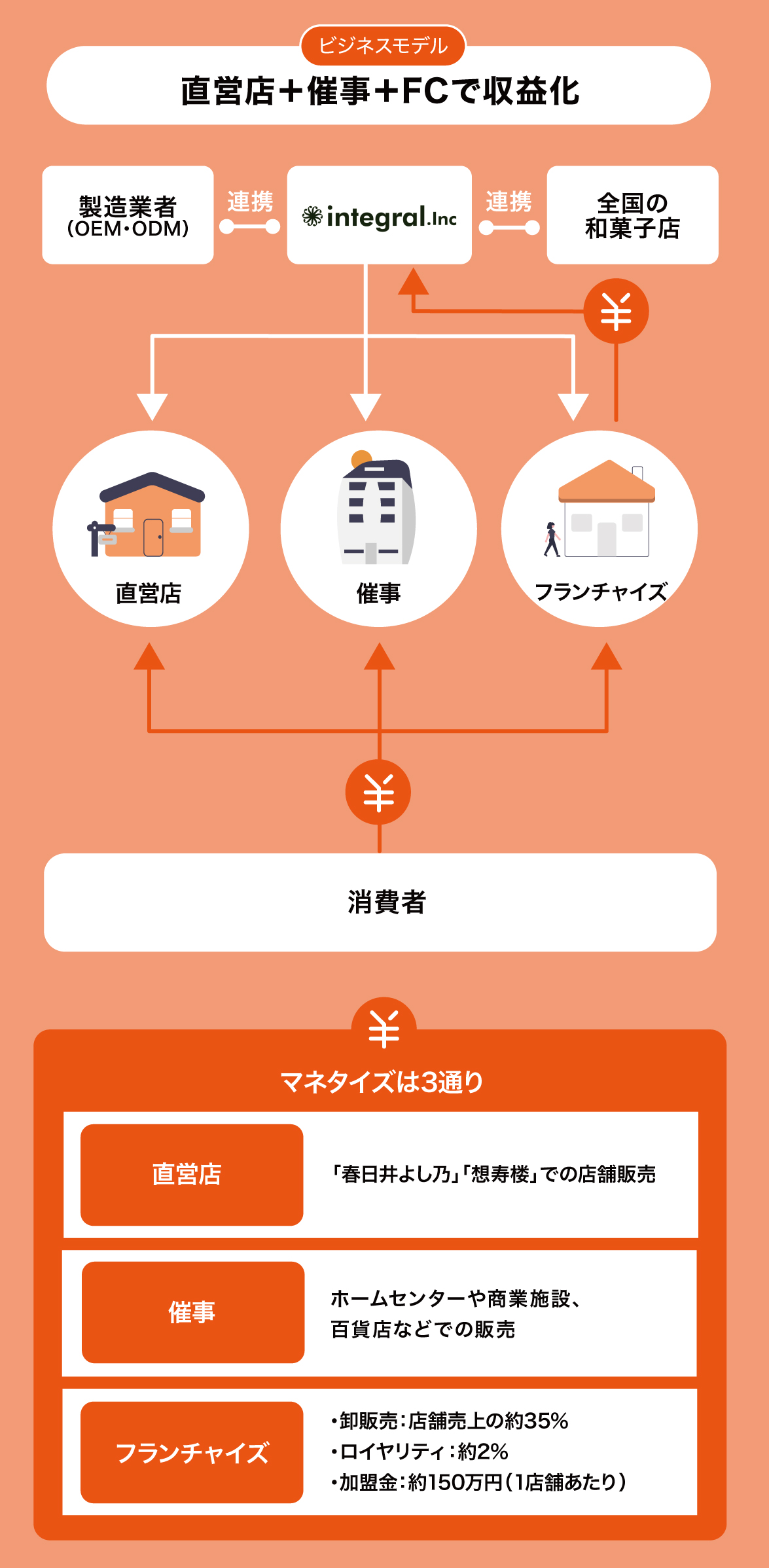 また、食品メーカーや全国百貨店との強固なコネクションを持つメンバーもおり、フランチャイズ展開を行うための体制も構築しています。