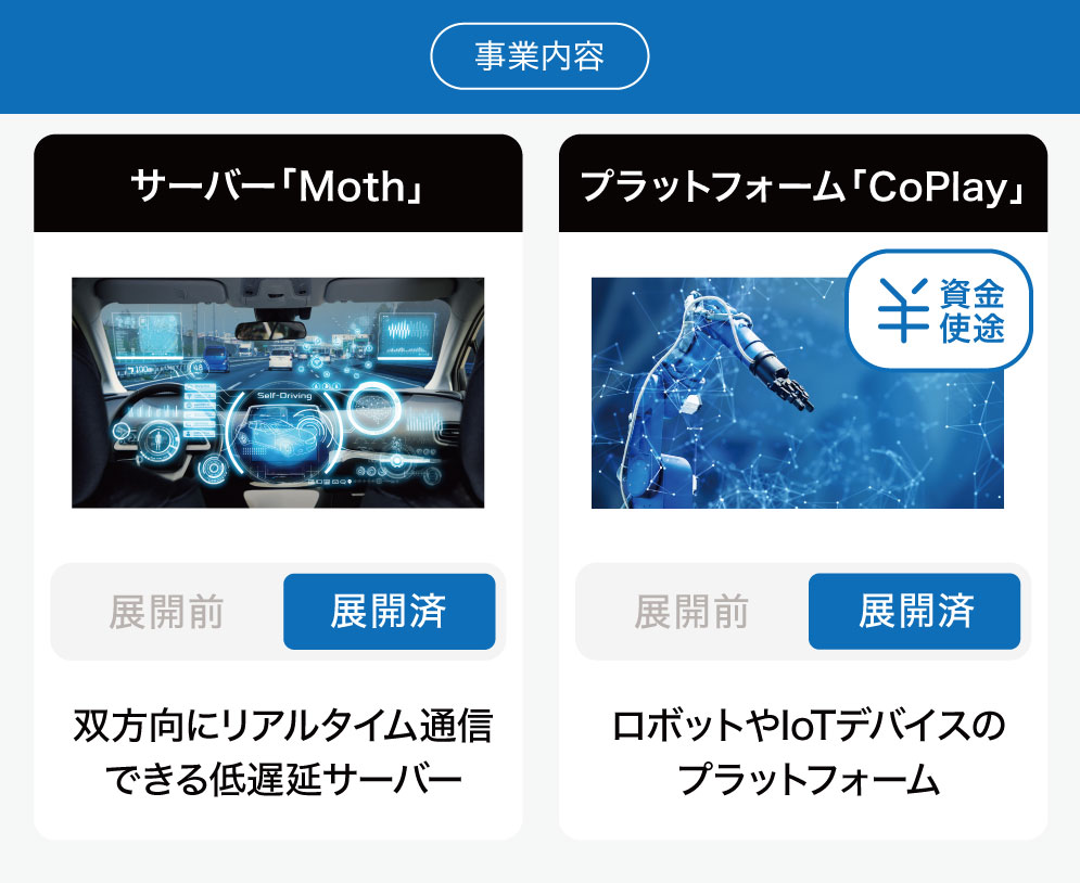 世界中どこからでもロボットを遠隔操作できるような環境構築の一つとして、リアルタイムコミュニケーションプラットフォーム「CoPlay」の構築を目指しており、これまでは他社のロボットを共同開発する形で「CoPlay」の展開を進めてきました。