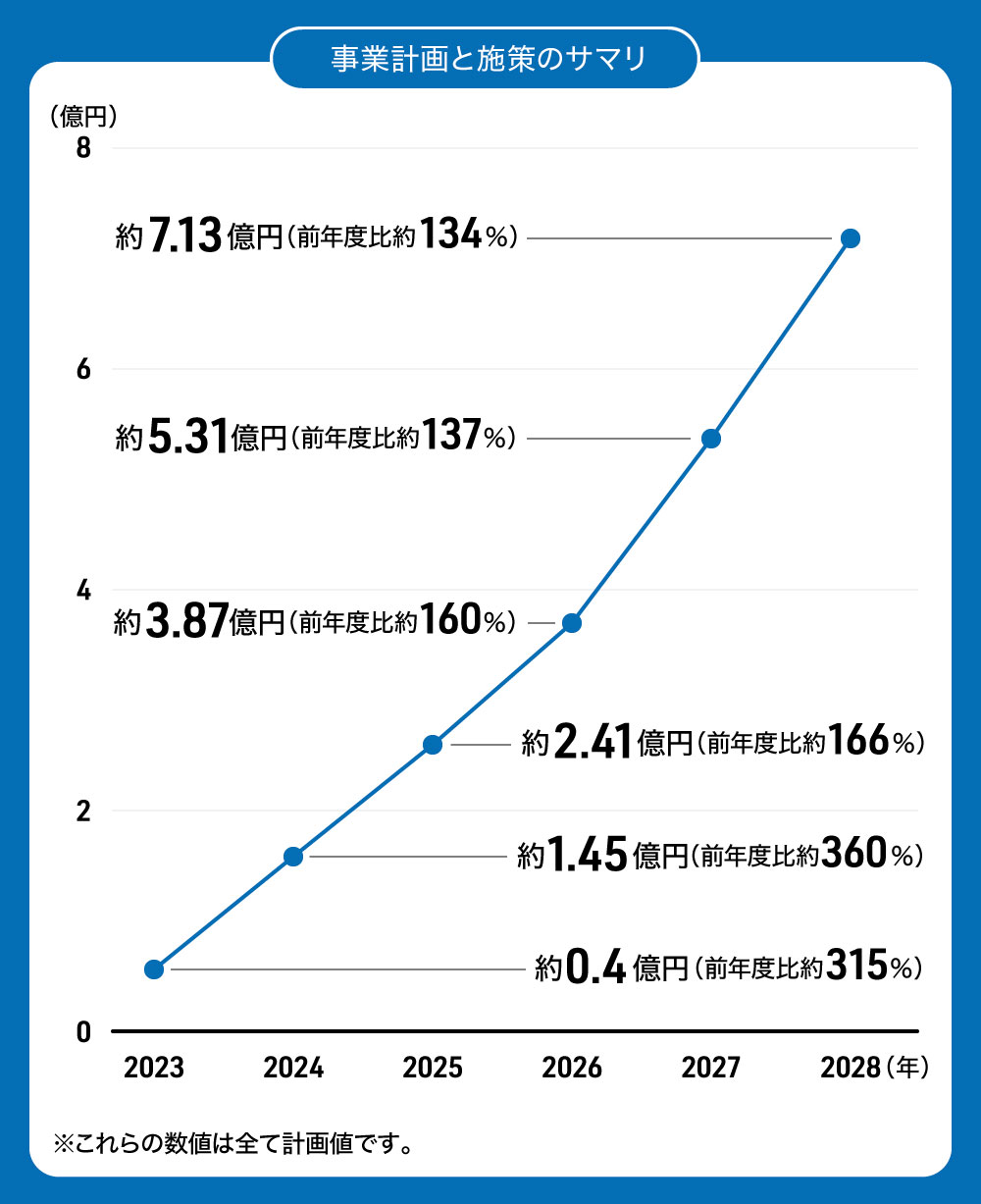 下の表は現時点において今後の経営が事業計画通りに進展した場合のスケジュールです。そのため、今回の資金調達の成否、調達金額によって、スケジュールは変更となる場合がございますので、予めご了承ください。また、売上高は事業計画を前提としており、発行者の予想であるため、将来の株価及びIPO等を保証するものではありません。