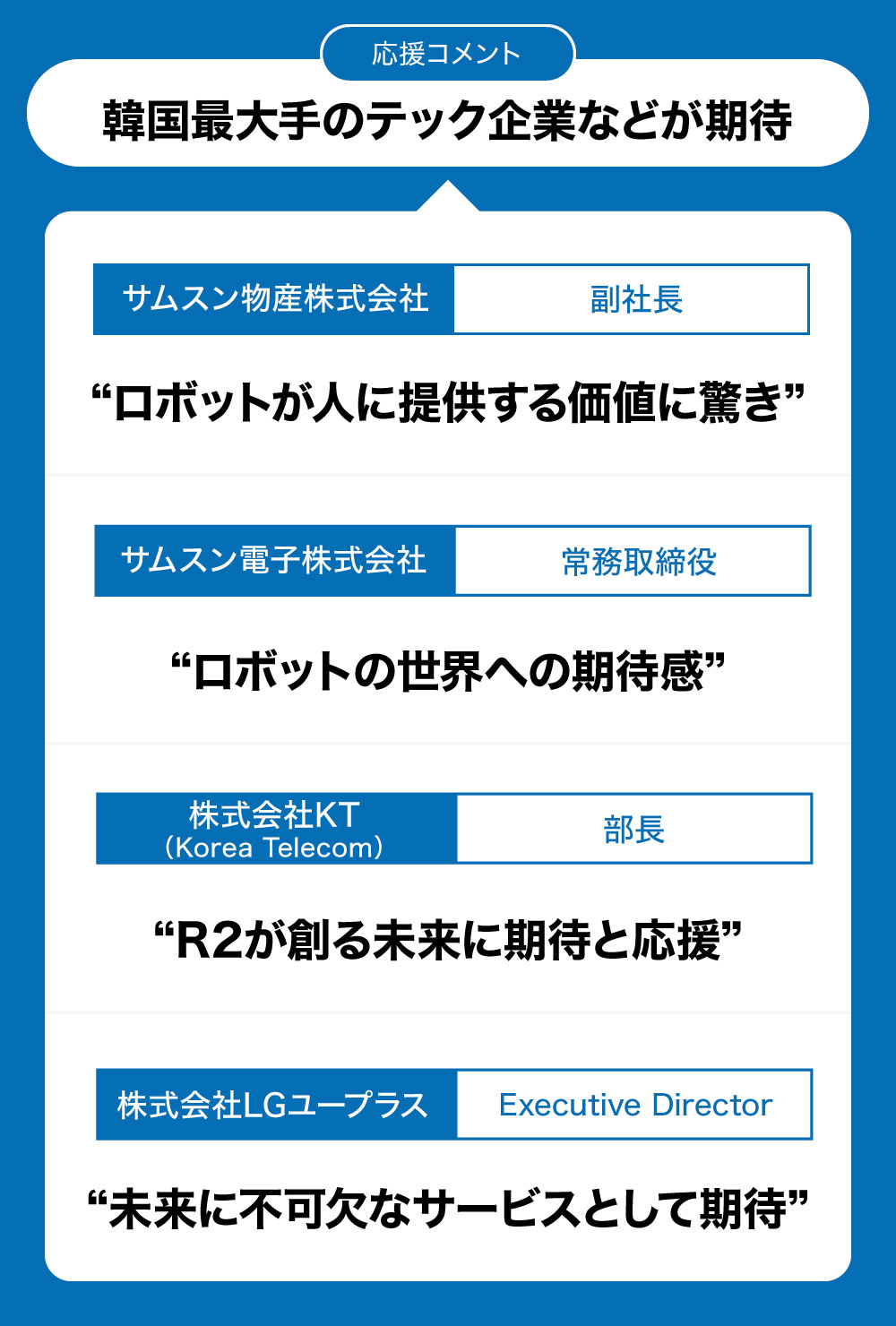 今回の資金調達にあたり、弊社並びに親会社が展開している、超低遅延のリアルタイム通信技術がつくる未来に対して、応援と期待のコメントをいただいております。