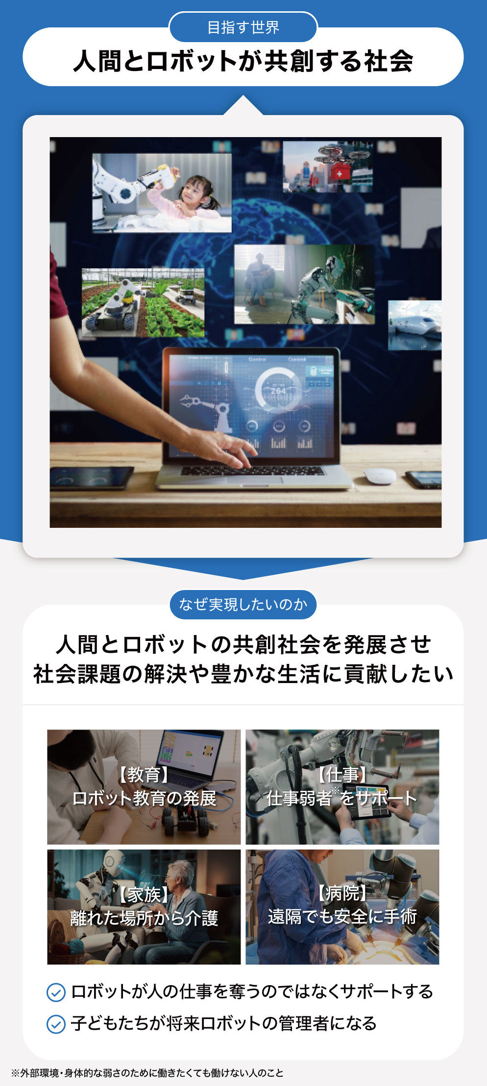 また一方で、ロボット市場の発展が人の仕事を奪うようなことになってはいけないとも考えています。そのため、弊社では将来を担う子どもたちがロボットの扱い方を学ぶ機会を提供することで、彼らがいずれロボットの管理者になるという未来を目指しています。