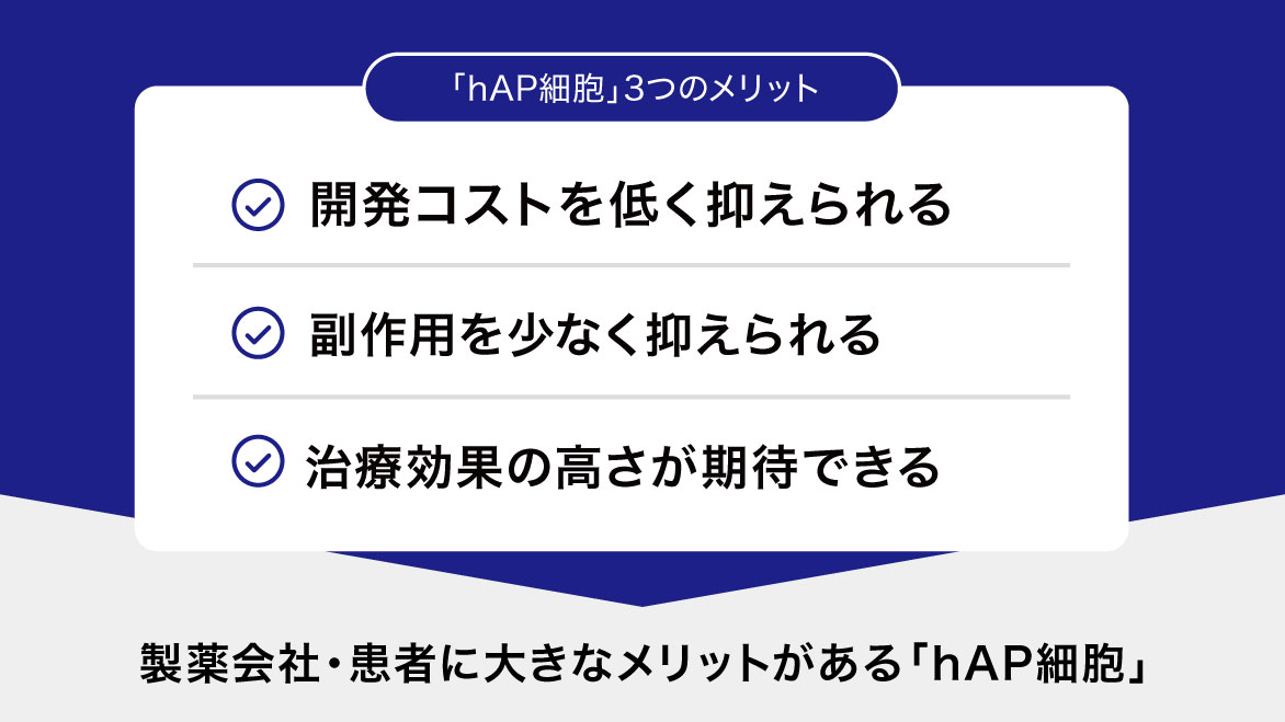 「hAP細胞」は、製薬会社や患者にも大きなメリットをもたらすと考えています。