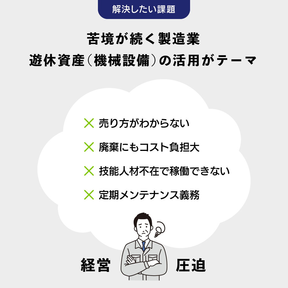 また、製造業では人手不足が深刻化する中、技能人材の不在や定期的なメンテナンス、倉庫での管理コストなど、遊休資産化した機械が経営を圧迫するケースが増えています。