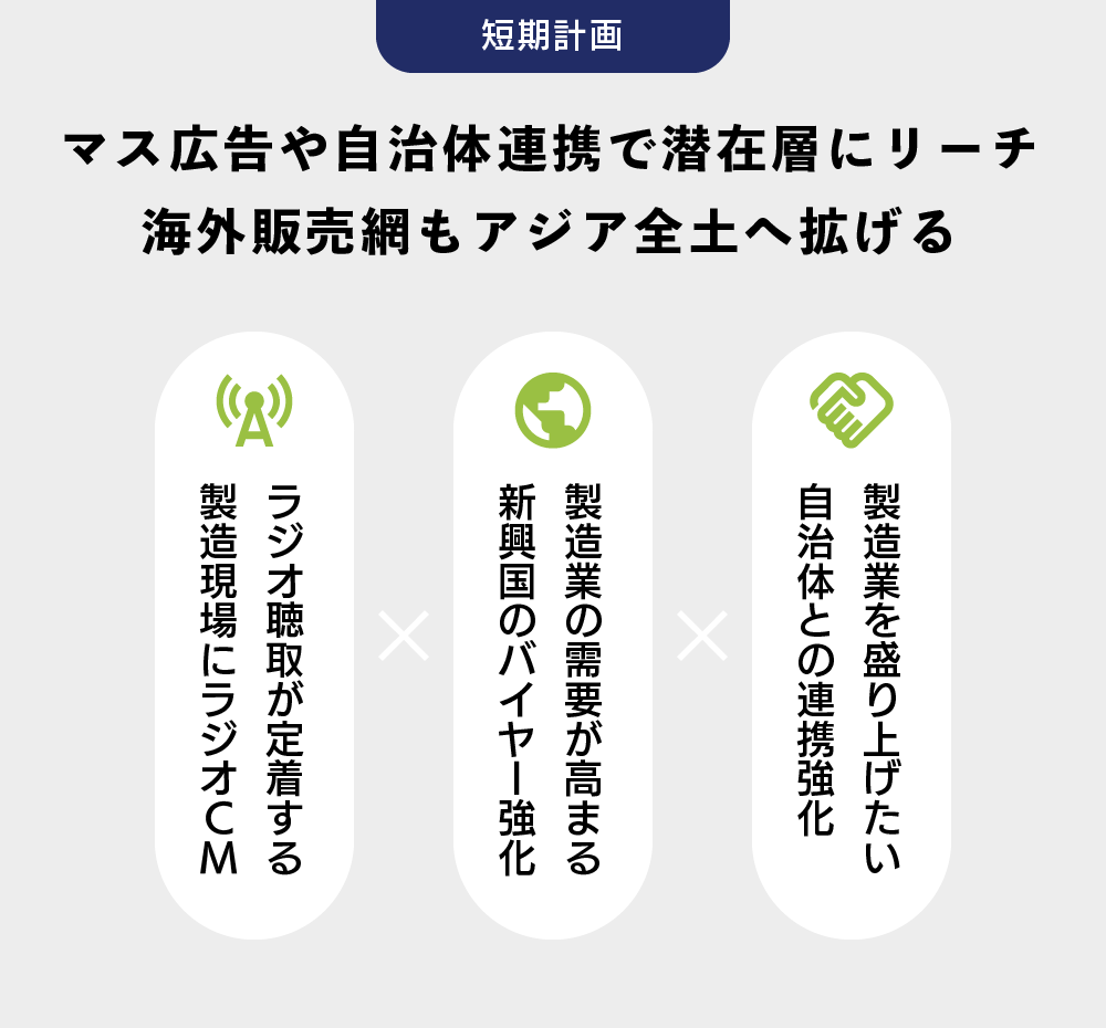 現在、仕入れ先は一定数確保できているものの、売上拡大に向けてまだまだ増やしていく必要があると考えています。そこで、製造現場の多くが聞いているラジオCMを通じて認知度向上を図る予定です。