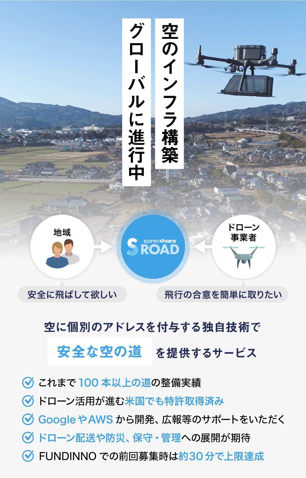 ドローンの空路をつくるベンチャー。前回募集時は約30分で上限達成