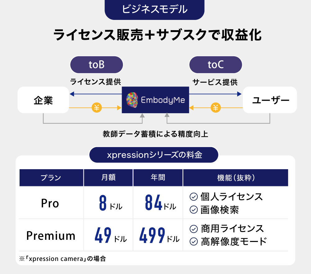 2022年にリリースした「xpression camera」は、2023年には売上が前年比15倍以上と大きく伸びており、リリースしたばかりの「xpression avatar」も急成長しています。現在、前月比プラス約30%のペースで売上が成長しており、年間経常収益は2024年初頭に1億円を達成予定です。