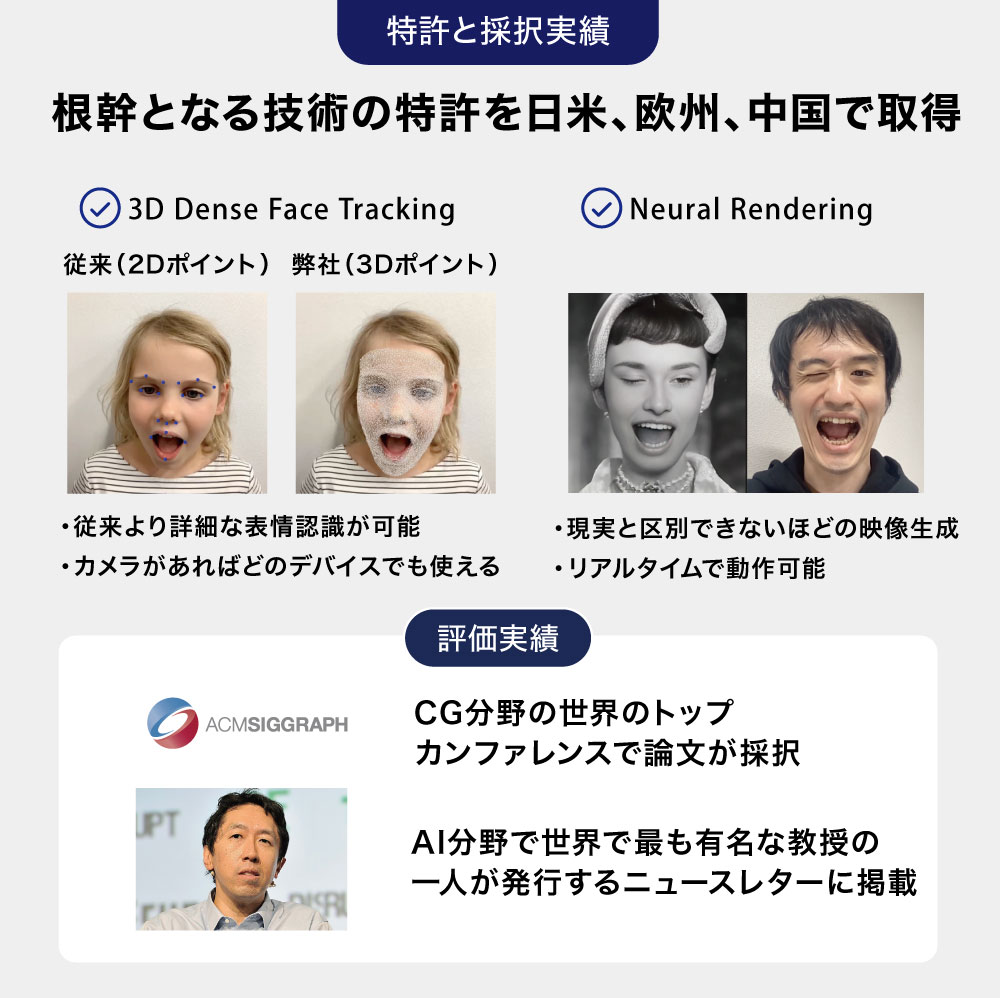 こうした先進的な研究開発の成果のもとに生み出された「xpression camera」「xpression avatar」「xpression chat」などのプロダクトは、特に海外ユーザーに支持され成長を続けており、弊社が特に支援したいと考えている日本発技術のグローバル展開を実現しています。